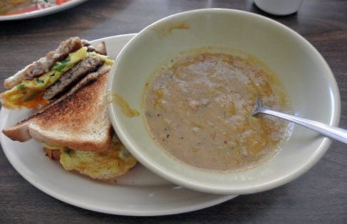 27 May 2014: Who can resist a breakfast sandwich called the McLeroy? The McLeroy is basically a fried egg sandwiched between thick slices of jalapeño sausage and toasted white bread. For good measure, it’s served with your choice of red or green chile (go for the green). By itself the sandwich is quite good. Dip it into the green chile and it’s akin to a religious epiphany. Seriously, the green chile is sabroso y piquante.