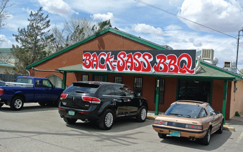 On January 29, 2014, Back-Sass BBQ put down roots in Bernalillo, launching its bodacious barbecue operation in a restaurant storefront. Located on North Camino del Pueblo less than half a mile north of heavily trafficked Highway 550, Back-Sass is easy to find if you follow the smoke which wafts into your motorized conveyance like a sweet Texas smoke signal beckoning you to try some baby backs. Back-Sass BBQ is situated in a fairly nondescript edifice which formerly housed La Bamba Grill among other businesses. Its signage is bold, sassy and inviting.