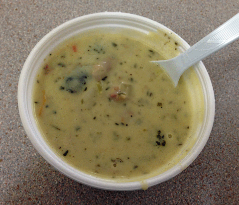 3 April 2014: During an April, 2014 visit to Back-Sass BBQ, Gina told my friend Bruce “Sr Plata” Silver and I that before she was a barbecue lady, she was a soup lady and that she planned on introducing soup to the menu once she perfected her recipe. She then treated us to a magnificent example of her soup handiwork, a steaming hot bowl of smoked turkey and broccoli soup. This soup is perfect as is and should be on the daily menu starting now! It’s a rich and creamy soup with a strong pepper influence coalescing with the smokiness of turkey and the al dente crispness of broccoli, celery and other vegetables. Both Sr. Plata and I took home 32-ounces of this enchanting elixir to share with our respective wives, but we secretly hoped they don’t like it as much as we do so we could have all of it. Unfortunately for us, they loved it.