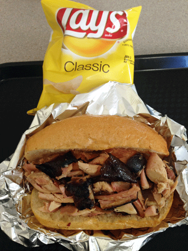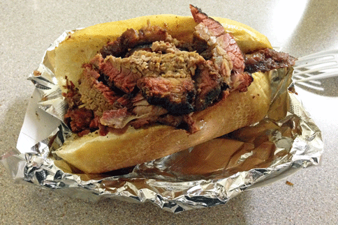 09 April 2014: If you prefer your brisket on a sandwich, Back-Sass serves an overstuffed sandwich just brimming with moist, tender brisket nestled in a soft hoagie bun. My friend and fellow barbecue aficionado Mike Muller uses brisket as his benchmark for how good a barbecue restaurant is. He loved this one and was surprised at just how moist and tender the brisket is. The brisket pulls away easily and you won’t find any annoying sinew or fat.
