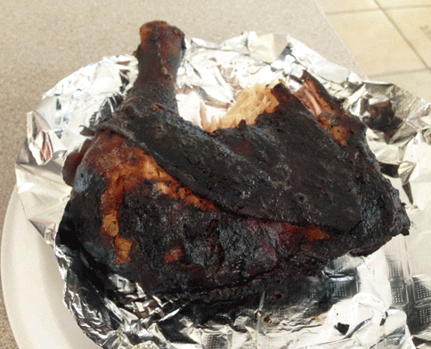 09 April 2014: The very last item on the menu I had from Back-Sass was the chicken. True to form, it’s very clucking good. The chicken is available as a sandwich or you can opt for a half-chicken (thigh and leg). Any way you have it will become your instant favorite. As with all meats smoked by Gina, the chicken is moist, tender and redolent with apple wood smokiness. The half chicken has a wonderful crust which, at first glance, may appear to be on the burnt side, but that patina comes from the marinade she uses on her beer can chicken recipe. That crust is poultry’s answer to pork skin and is absolutely delicious.