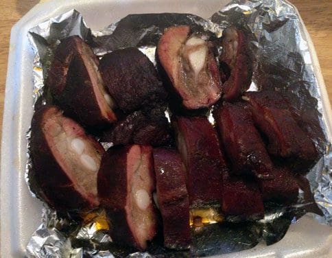 1 May 2014: Credit renowned author Calvin Trillin for exposing the world to burnt ends, what some have called “nuggets of barbecue gold.” Though born of tougher, drier, misshapen end pieces of brisket, burnt ends are imbued with mouth-watering qualities, a coalescence of melted-down fat and meat slowly grilled into smoky, crunchy, meaty bark. They’re a delightful delicacy not always appreciated by barbecue purists as they tend to be not only fatty, chewy and tough, but often very smoky. For those of us who concur with Trillin’s sage opinion, they’re truly special. Back-Sass BBQ’s version is Kansas City worthy, like delicious meat candy.
