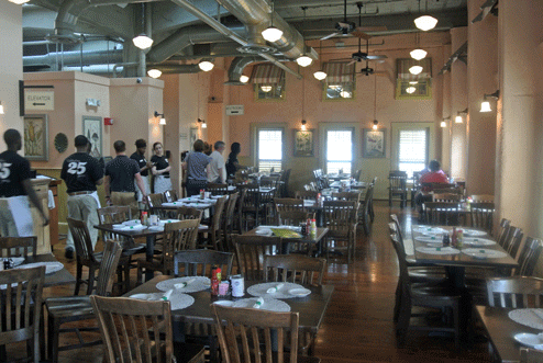 The Lady and Sons and its attached gift store occupy nearly an entire city block in a large, weathered, three-story plus basement, 200-year old brick building on Congress Street with 15,000 square feet of dining, full service bar and office space. Diners queue up shortly before the restaurant opens. As with many “pilgrimage” restaurants, conversation among those in line centers around what part of the country we’re all from. There were few, if any, locals in line. When your name is called, you’re handed a plastic card indicating whether you’re eating on the first or third floor of the restaurant (the second floor and basement are used for banquets).