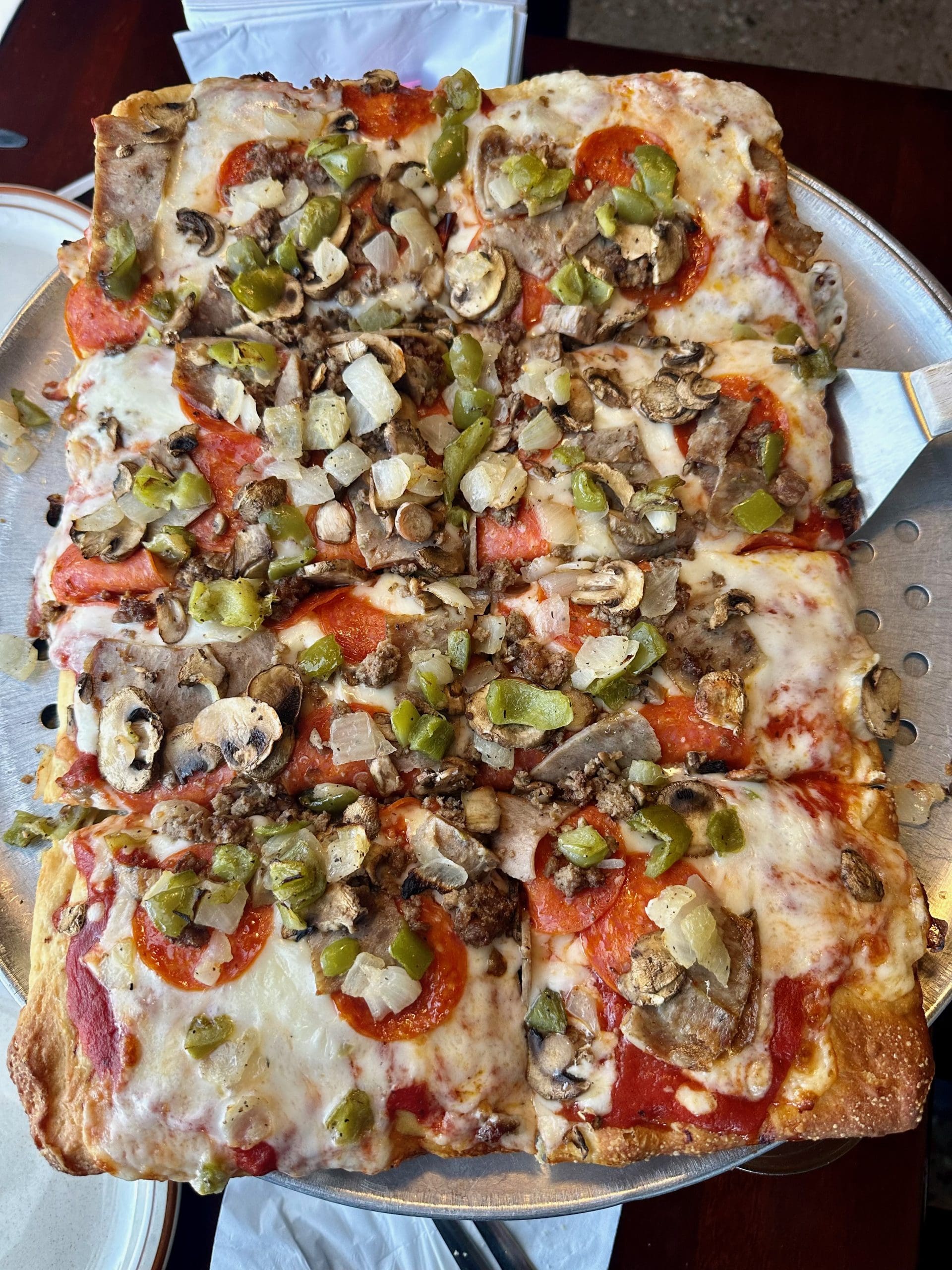 8 September 2024: Before returning to Luigi’s after a fourteen year absence, I perused Yelp. That’s always a risky, unpredictable proposition. While some diners raved about Luigi’s fabulous fare, others blasted the restaurant. Executing a “by rating” filter helped. Being a glass is half-full guy, I focused on the five-star reviews, those written by other diners who also focus on all that’s good in a dining experience. The one-star ratings mostly provide comic relief. Many of the four- and five-star reviews waxed poetic about the pasta, but the overwhelming favorite seemed to be Luigi’s pizza.