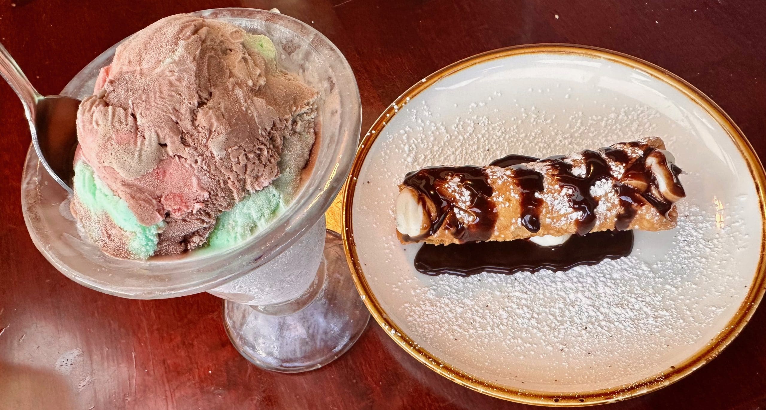 8 September 2024: A panacea of Italian dessert favorites is available for diners with a sweet, but not too sweet, tooth. That means tiramisu that doesn’t taste like a cloying pudding. The tiramisu, served in a small bowl, is made with ladyfingers and is redolent with espresso, not quite enough for me, but sure to please most coffee lovers. Cannoli, the wonderful Sicilian tube-shaped shells of fried pastry dough stuffed with a sweet, creamy Ricotta cheese-based filling are also available, including a chocolate cannoli. Lightly dusted with confectioner’s sugar, the cannoli is quite good.