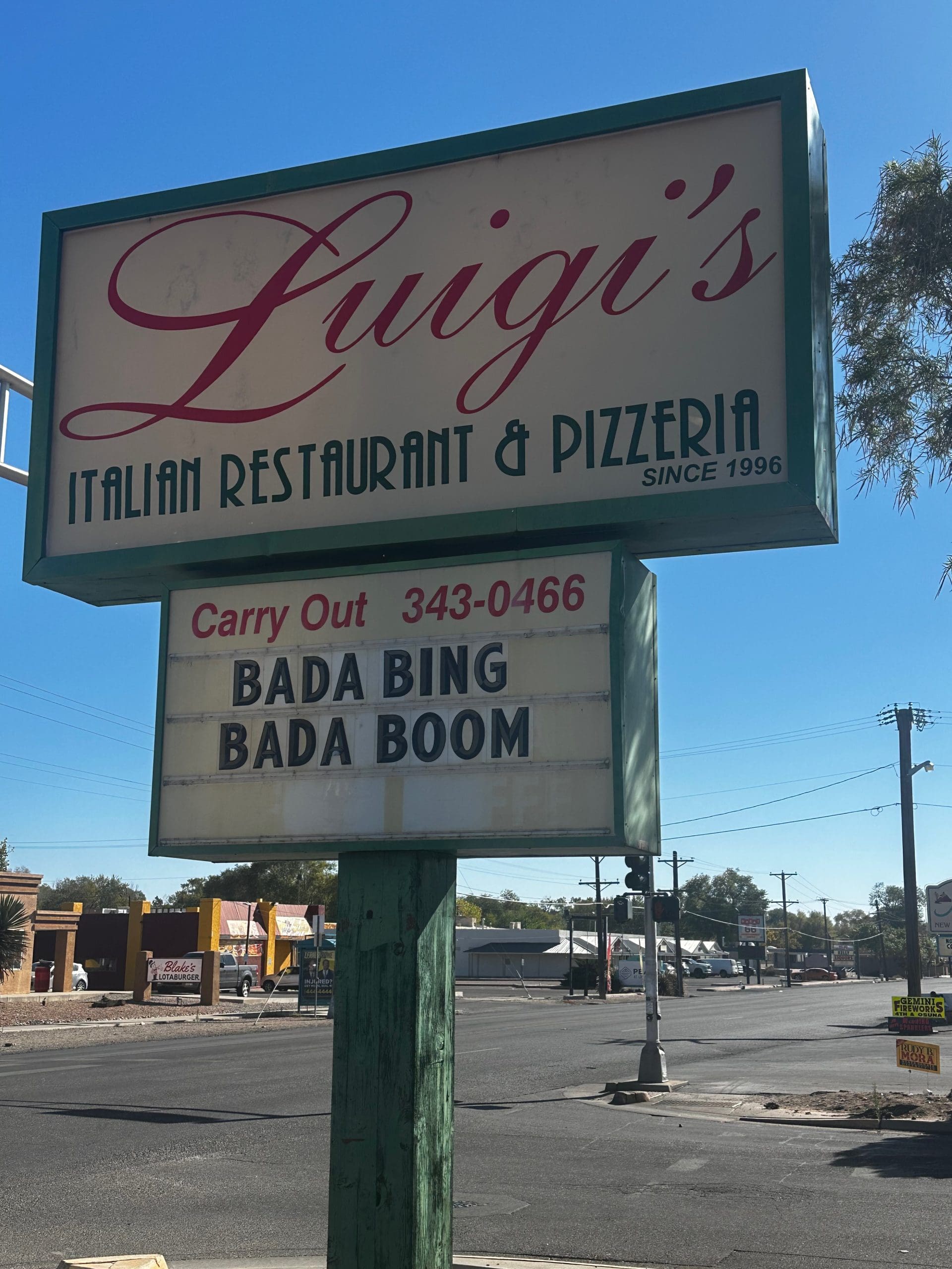 2 November 2024: One of several atypical Italian offerings on Luigi’s menu is a carne adovada pizza. Pizza has become a virtual canvas on which pizza artisans paint with a broad brush, the more creative the ingredients, the better. There is virtually no sacred cow, no time-honored traditions left. When it comes to pizza, anything goes. Still, carne adovada pizza is one of those things that will have you doing a double-take. Even as you’re eating it and proclaiming it delicious, you’ll be questioning the propriety of this unique pizza…and it is a delicious pizza. I asked Tina what pizza aficionados in Naples would think of carne adovada pizza. She confidently told me “they would love it.”