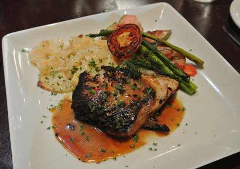16 August 2013: Just how good is the black cod with a miso glaze? It’s good enough to inspire a return visit one week later and this time, I had all six ounces of deliciousness all too myself. It was just as wonderful the second time around. This superb entree made my “best of the best for 2013,” a tribute to the very best dishes I had the pleasure of consuming during the year. I also paid much more attention to the sides: scalloped potatoes and roasted vegetables (carrots, asparagus, zucchini, beets and a single tomato. All were prepared to perfection. The scalloped potatoes had the right blend of cheese and creaminess to appeal to diners of all ages.