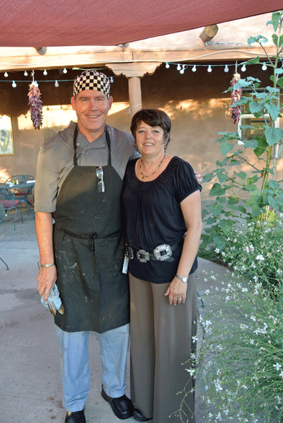 An exhibition kitchen is the domain in which Kevin Bladergroen plies his chef trade as he has now for three and a half decades. After years of opening, working in and managing the kitchens of several restaurants in Europe and America, he has set down roots in Placitas. No stranger to New Mexico, he started his professional career in 1975 at Casa Vieja, a Corrales institution. He has also worked at the Prairie Star and before partnering with his brother and wife Anja to launch Blades’ Bistro, was executive chef at the innovative Standard Diner. Anja runs the front of the house. She is as charming and gracious a hostess as there is in New Mexico, the true first lady of Placitas.