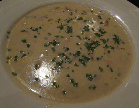 23 February 2012: Ask any New England transplant to New Mexico what soup they miss most and invariably the answer will be clam chowder (chowdah to Bob of the Village People), the thick, hearty, soul-warming favorite of folks from Maine to Connecticut. Expats will also lament the absence of good clam chowder in the Land of Enchantment. Blades’ rendition is the best we’ve had since vacationing in Massachusetts in 2009. It’s creamy and thick, but not overly so. The potatoes are perfectly prepared and the clams are plentiful –a nice ratio of potatoes to clams. Best, they were neither tough nor chewy. It would have been interesting to see Chef Bladergroen attempt oyster crackers.