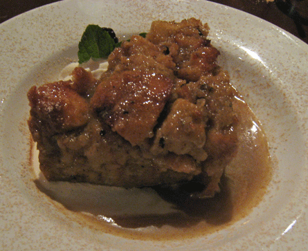 23 February 2012: Besides sweetbreads, another addiction my friend Larry McGoldrick and I share is for bread pudding. It’s our catnip and kryptonite–practically bringing us to our knees in gratitude to the bread pudding gods when it’s made right. Blades’ bread pudding made Larry’s Bread Pudding Hall of Fame, an indication of its rarefied greatness. It’s at or near the top of my list, too. Unlike the soggy, custard-like bread pudding that relies on cloying sauces for flavor, this is a firm yet spongy bread pudding with a texture that’s absolutely spot-on. In terms of taste, it’s an eye-opener with the pronounced flavor of banana and rum, the latter cutting the sweetness of the former. It’s a winning combination.