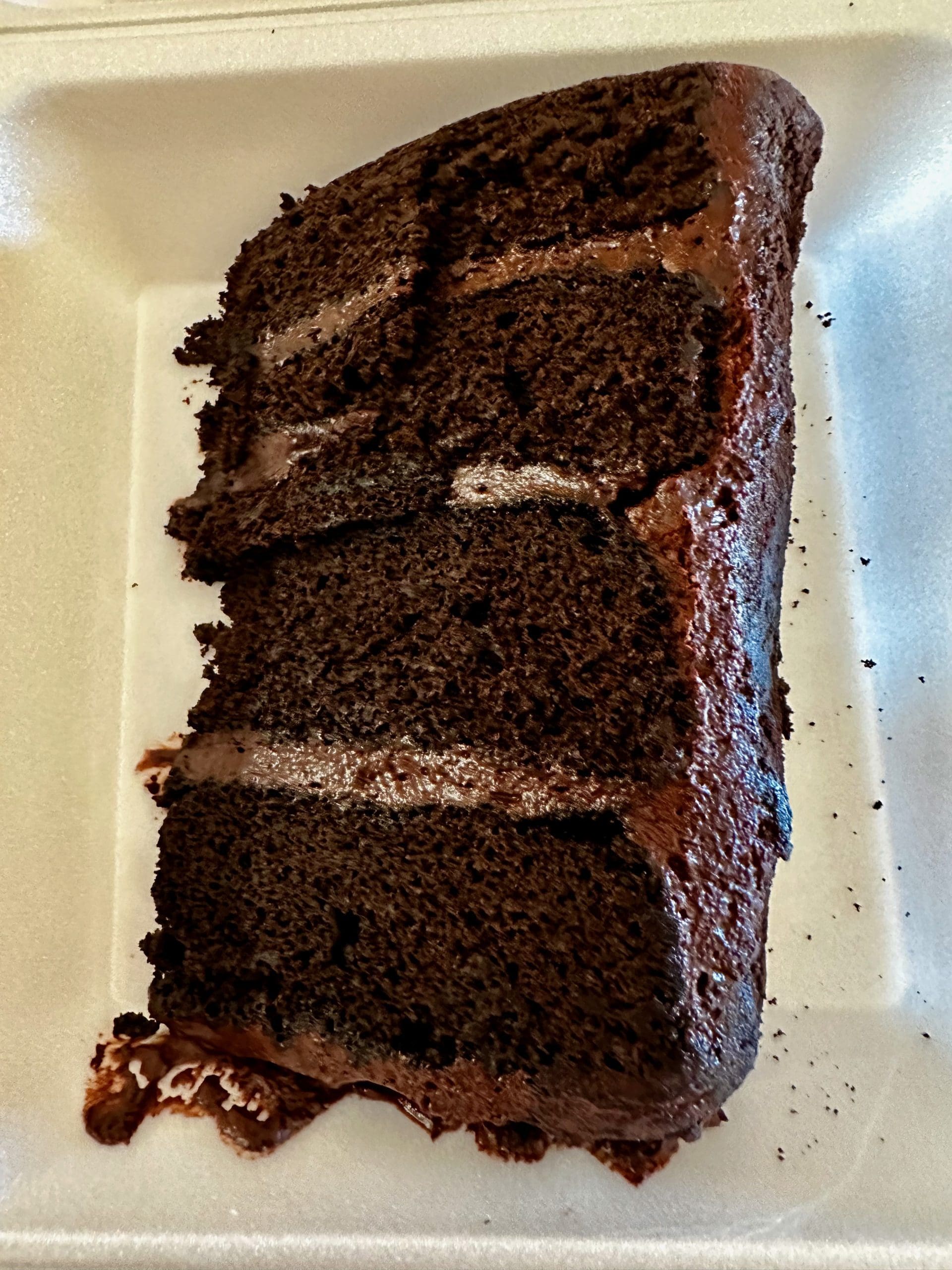 A number of cake desserts are always tempting, including a lemon berry mascarpone cake (cream cake topped with blueberries, cranberries and vanilla crumb. The cake is filled with lemon cream and finished with vanilla cake crumb on the sides and a dusting of sugar. It’s a very refreshing cake in which the lip-pursing qualities of tangy lemon and berries are tempered with the richness of mascarpone and vanilla cake crumb. As with all of Mario’s desserts, the chocolate cake below is huge. It may be easier to scale the Sandias than to finish a slice of this gigantic slab. Along with the chocolate cake at the Western View Diner & Steakhouse it’s the very best in town.