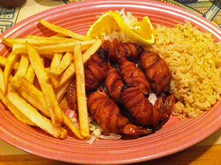 Landlubbers need not feel as if they’ve been left on the dock of the bay. Meaty options abound for carnivores of all dispositions as well as do Mexican menu standards such as enchiladas, tacos, chile rellenos and burritos (none of which are adorned with Velveeta). The menu includes a section dedicated solely to steaks and no pedestrian slabs are these. They include the charbroiled and marinated Tampiquena Steak; the Steak A La Duranguense, a grilled top sirloin topped with a roasted Anaheim chile; Steak Milanesa, a steak breaded in a house specialty mix and even a traditional grilled New York steak, albeit one served with mushroom sauce.