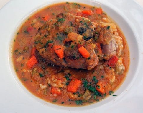 One of the consequences of the timing of our trip to California was that we missed out on the weekend special at Joe’s Pasta House in Rio Rancho. We missed out on Joe’s life-altering pork ossobuco, an entree so wondrously prepared, it’s been known to cause rocket’s red glare, bombs bursting in air foodgasms. As such, ordering Trattoria Mollie’s Ossobuco Milanese was a no-brainer. Mollie’s rendition showcases a meaty veal shank prepared in a stew with prosciutto, onions, carrots, celery and rice cooked in a white wine sauce. It’s an amazing dish as rich and sumptuous as any ossobuco we’ve had, bringing to mind favorable comparisons with Joe’s version.