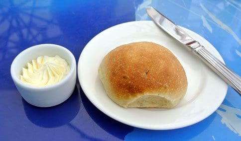 Shortly after you’re seated and menus are gently placed in your anxious hands, a server uses silver tongs to extricate a single bread roll from its warm repository. Just out of the oven, it’s a rosemary foccacia from which wisps of steam escape when you cut into it. The steam is redolent of rosemary, just enough to be discernible. The foccacia is golden brown on the outside with just enough crust to hold in soft, tender and delicious innards. It’s served with butter that’s easy to spread.