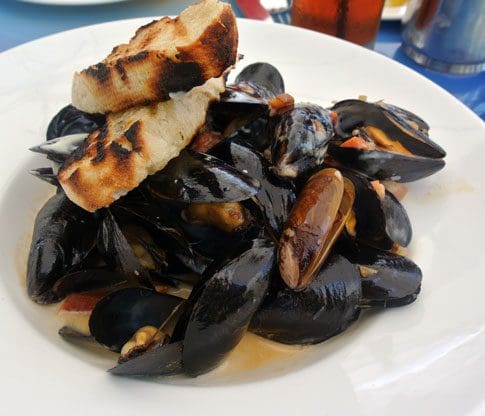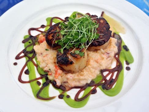 Save for an artisan cheese plate and baked brie in puff pastry, every item on the eight item appetizer menu showcases fresh seafood. Sauteed Maine mussels are an outstanding option. The broth is amazing, an ambrosia of Nueske’s bacon, tomatoes, whole grain mustard and ale butter. If you’ve never had Nueske’s bacon, you’re in for a treat. Nueske’s bacon is applewood smoked perfection which might just spoil all other bacon for you. The salty smokiness permeates the broth and impregnates the briny mussels. Two slices of grilled bread are available for dredging the broth, but a spoon works just as well.