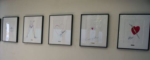The walls at Geoffrey’s Malibu are festooned with copies of whimsical framed “doodles” created by Hollywood celebrities and movie stars who have dined at the posh seaside restaurant. Most are tongue-in-cheek self-portraits which probably speak volumes about the glitterati themselves–and not just whether they lack or are blessed with an artistic talent beyond their particular medium. Thematically, all the portraits include a heart. That’s because Harvey Baskin, the restaurant’s previous owner asked the artists to donate originals for publication and sale in support of a charity for children with heart disease.