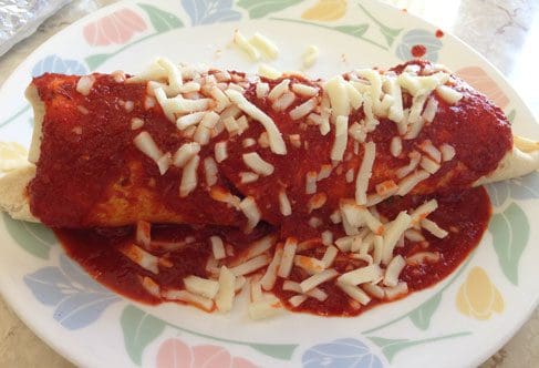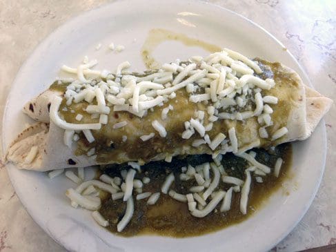During our inaugural visit, two terms often used in Mexico could be used to describe how my friend Bill Resnik and I ordered. Those two words are machismo and bravado. Assuming such inexpensive burritos would also be small, we ordered two apiece. One burrito would feed a small family, especially if smothered with the chile rojo (red) or chile verde (green). This Panaderia doesn’t scrimp in stuffing its burritos.