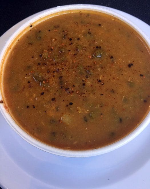 26 June 2018: The “Sizzling Sides” section of the menu lists eight options, any of which would be a terrific addition to your meal. Though our June, 2018 visit came on a day forecast to top the dreaded 100 degrees, we couldn’t pass up the dal lentil soup. Dal, a term which refers to both the legumes used in the prepared dish and the dish itself, is one of the most popular dishes in Nepal and India. While seasonings can vary, we discerned onion, turmeric, ginger, cumin and chilies of some sort. At least that’s what we thought we discerned. We were too busy enjoying it that we didn’t spend much time contemplating its ingredients.