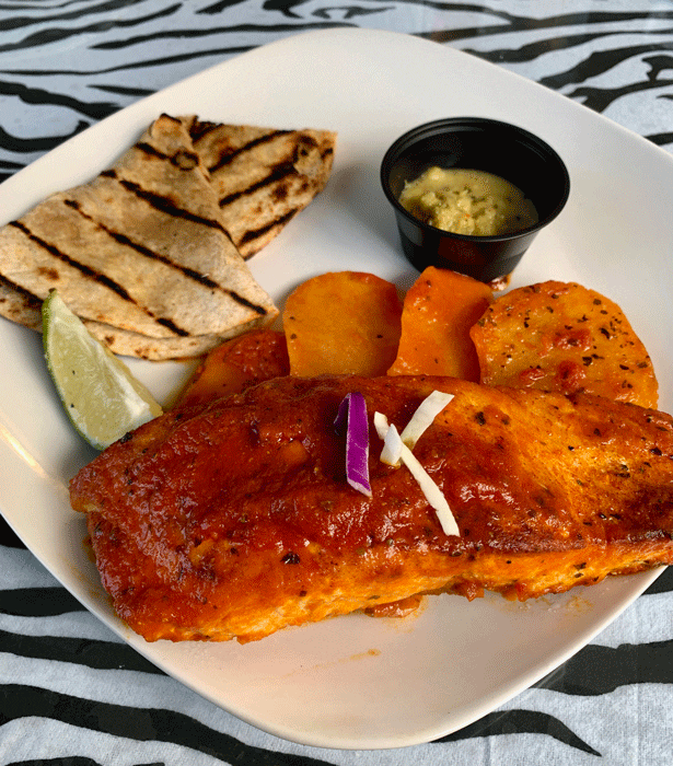 Shaina was the mastermind behind the Safari Grill’s 2019 launch of a Chai Bar, a cafe specializing in premium chai tea and Ayurvedic drinks. “Chai tea” is, in fact, a redundant. In many parts of the world, chai IS tea, more specifically a spiced milk tea that has swept the planet. The olfactory-arousing spices used to prepare the tea include cardamom, ginger, pepper, cloves and cinnamon. Chai produces a soothing, warming effect, acts as a natural digestive aid and imparts a sense of well-being. Salubrious as the chai may be, for me there’s nothing comparable to a hot cup of coffee when I need a pick-me-up. The Safari Grill one-ups most coffees with a delicious masala coffee spiced with cardamom, cinnamon, ginger and milk. Sr. Plata and I had three cups.