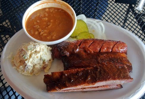 Restaurant employees still sport shirts emblazoned with the slogan “we smoke the good stuff.” For the most part, the “good stuff” still comes from the Lone Star state. The restaurant’s Black Angus beef is sourced from trusted Texas suppliers and sausage comes from Elgin, the self-proclaimed “Sausage Capital of Texas.” The twin Heartland smokers which send smoky invitations to passing motorists come from Missouri, another barbecue-crazed state. You’ll pass by them on your way into the restaurant. The aromas are a preview of deliciousness to come.