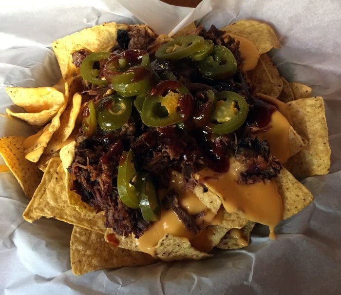 23 August 2017: BBQ Nachos are the sole appetizer on the menu though a heaping portion is enough to constitute a meal. Available with your choice of pulled pork or chopped brisket, the nachos are served atop a bed of tortilla chips covered with nacho cheese, jalapenos and the house barbecue sauce. The chopped brisket is redolent with the fragrant aroma of oak and there’s plenty of it. We found the sauce a bit on the sweet side with tangy notes that couldn’t quite tame the sweetness. That’s probably why my Kim competed with me for the jalapenos–and she normally wouldn’t touch jalapenos with the proverbial ten-foot-pole.