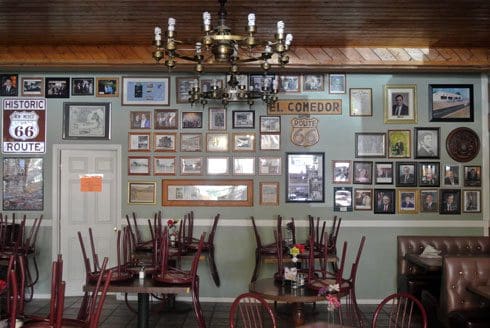 For sheer character and history, however, you can’t beat the rotosphere that lights up above the restaurant’s exterior. Installed in the 1960s, it is very much reminiscent of the neon-spangled era of Route 66 and in fact, remains the only such rotosphere on Route 66. When first launched, locals called it “Sputnik” while others have likened it to an old U.S. Navy mine. In any case, it’s a vibrant, multi-hued star which beckons diners and visitors to El Comedor de Anayas. When running, the spiked globe rotates horizontally and each hemisphere rotates around a vertical axis in opposite directions.