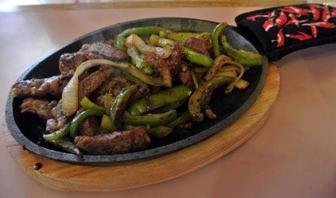 Beef, chicken or a combination thereof fajitas are a good choice for visitors whose heat tolerance is on the ketchup level (as was the case with my mother-in-law). Served in a sizzling skillet with grilled onions and green peppers, the beef has a terrific grilled flavor though a few gristle-laden beef strips detracted from our enjoyment. The fajitas are served with all the “fixings:” shredded cheese, flour tortillas, sour cream and guacamole. The guacamole is very good, much more than the personality lacking mashed avocados passed off as guacamole at some restaurants.