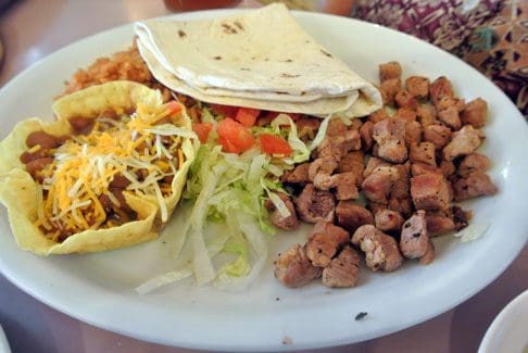 You don’t always know what to expect when ordering carnitas at New Mexican and Mexican restaurants. We’ve had everything from fried ground beef to small ribs delivered to our table when ordering them. At Comedor de Anayas, carnitas are cubes of pork served with a tortilla, Spanish rice and beans. The carnitas are seasoned very well with flecks of pepper lending personality. The Spanish rice is one of those take-or-leave items most New Mexicans see only in restaurants.