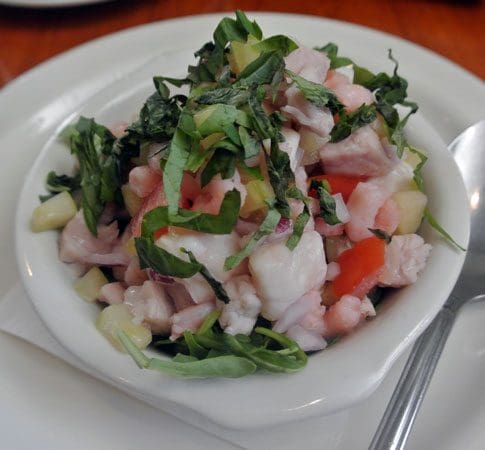 27 September 2014: Time was the only restaurants in which you could find ceviche were either Peruvian or Mexican. Today ceviche can be found in Japanese restaurants as well as avant-garde Italian eateries such as Piatanzi . Each restaurant puts its own spin on a dish which is essentially seafood catalyzed in citrus juices. At Piattini, the Ceviche Italiano ( scallop, shrimp, tuna, tomato, cucumber, lime, parsley, basil) would never be mistaken for the ceviche at a Mexican restaurant where the citrus flavors can be a bit overwhelming. The emphasis at Piattini is on the freshness and natural flavor of the seafood and the way it plays against a lesser citrus influence. The invigorating Italian basil and its peppermint-anise notes is a terrific twist.