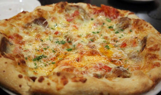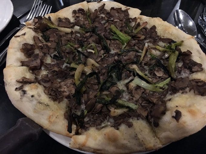19 January 2016: There are some ingredients on pizza that, at least for some of us, are solely “supporting cast.” For example, the “more is better” crowd wouldn’t conceive of constructing a pizza whose sole topping is black olives, red onions, green peppers or mushrooms. No, these are complementary ingredients, toppings which go well with pepperoni, sausage, bacon and the like. When my friends Larry McGoldrick, the professor with the perspicacious palate and Dazzling Deanell raved about a “mushroom” pizza, my first inclination was to dismiss it as “boring!” Larry went so far as to declare it the best pizza he’s ever had while Deanell confessed to having dreamed about it. It was a pizza I held off trying until I could share it with Larry and Deanell who’ve never steered me wrong. If anything, they may have undersold it.