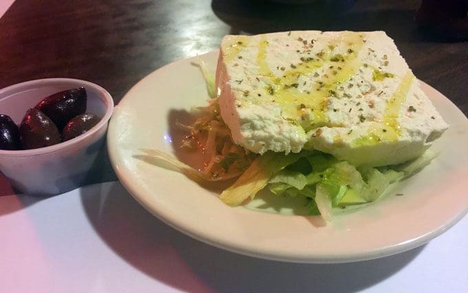 The parking lot is generally crowded with motorized conveyances of every type, size and description and waiting lists tend to be long, especially on weekends. Despite nearly overflow crowds, the wait staff is among the most accommodating and friendly in the city. Many regulars opt for the bounteous Greek appetizer plate in lieu of the standard fried appetizers (zucchini, onion rings, mushrooms and mozzarella cheese sticks) and are rewarded with a platter of salami strips, Greek olives, pepperoncini, tomatoes and one solitary dolma (stuffed grape leaf) all drizzled with Kalamata olive oil. Sadly, this otherwise outstanding precursor does not include pita bread.