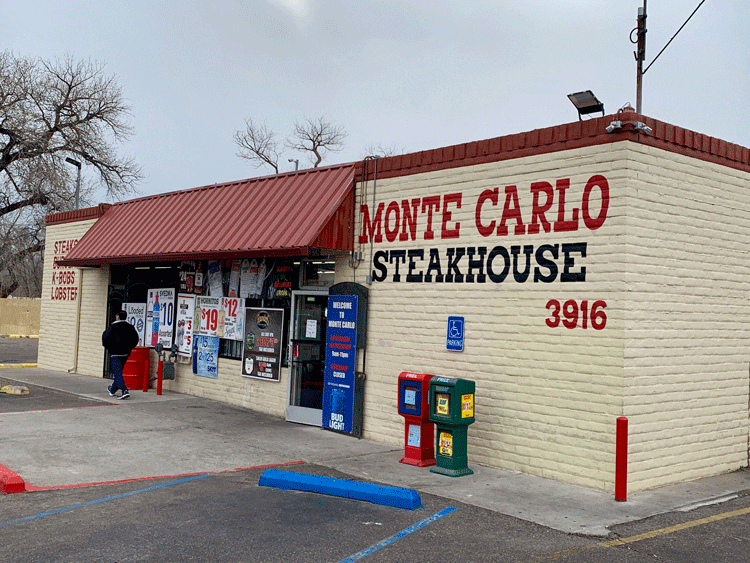 During his inaugural visit, one of my propeller-headed, Jedi-worshiping, 40-something Luke Skywalker wannabe colleagues at Intel uttered “come out of the light and into the darkness, Luke” when he stepped into the Monte Carlo Steakhouse from a bright, sunlit Duke City afternoon. It takes a few seconds for your eyes to adjust to the dimly lit beef and beer palace by the Rio Grande–and when they do adjust, you’ll wonder if you stepped out of a portal into the 1960s. The Monte Carlo Steakhouse is an anachronism, a bona fide throwback to a bygone era–and indeed, the restaurant has been in business since 1970.