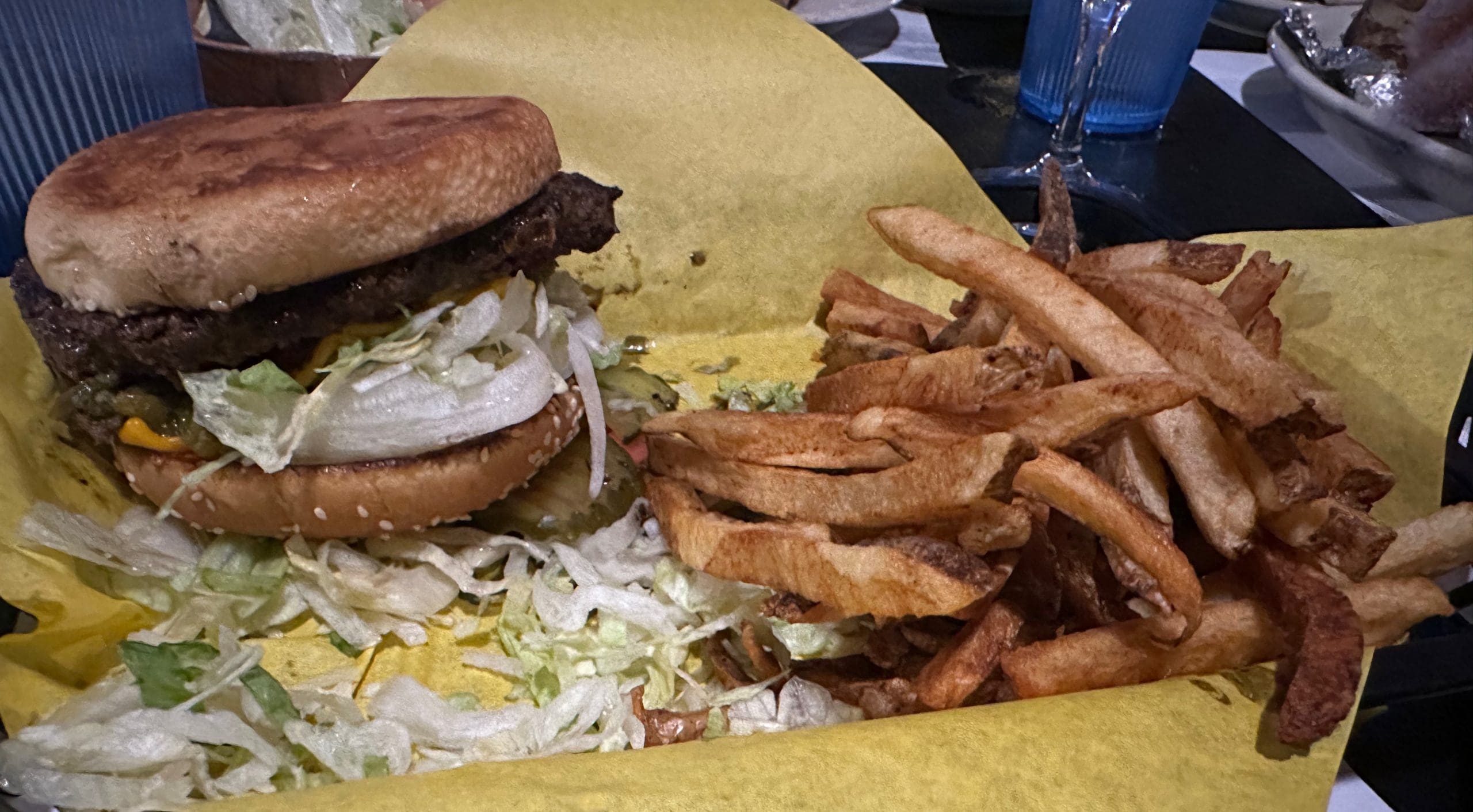 24 August 2023: Friends of Gil (Bill, Lynn, John and Kim) introduced the sensational Sarita, a long-time contributor to Gil’s Thrilling… to the Monte Carlo Steakhouse. Though she’s lived in Albuquerque for her entire life (20-something), she’d never visited the Monte Carlo. For years she’s heard what a great restaurant it is. Friends of Gil were out to show her it’s better than the hype. As the three guys at our table did, she ordered the fabulous Monte Carlo burger. You can read her assessment in the comments below.