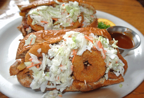 29 September 2010: In 2010, Powdrell’s East Side location was selected by Duke City voters as the inaugural winner of the city’s “rock this restaurant” challenge, qualifying for a complete make-over. It’s a testament to just how beloved this bastion of barbecue has become over the years. In honor of its selection, Powdrell’s introduced an “everything but the kitchen sink” sandwich called the “Rockin’ Po-Boy,” a beefy behemoth that would test the mettle of a professional gurgitator. Available in six- or twelve-inch sizes, this sandwich is engorged to its spilling point with beef brisket, pulled pork, smoked turkey, onion rings, French fries and coleslaw slathered with barbecue sauce. There’s obviously no need for sides because they’re inside the sandwich. You’ll be hard-pressed to finish this hard rockin’ sandwich.