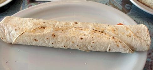 Gil did that shawarma come with a garlicky sauce and thin slices of sour pickle inside the wrap?