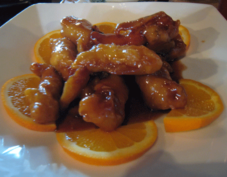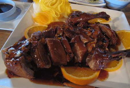 In the Orange Duck entree, you’ll experience what diners love and dislike most about duck. What we love most is the unctuous deliciousness of a rich, savory meat. What we dislike most about duck is all those annoying bones. Yes, duck is very fatty, but when you consider the lusciousness of duck confit, it seems to help the fattiness go down easier. It helps that the orange duck is awash in a sweet orange sauce punctuated with orange peel and its tangy zest. Not all meats go as well with such a sweet sauce, but duck is such a flavorful fowl that the flavor pairing is a natural.