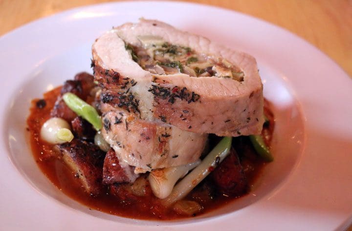 What is most amazing about the Chef Roulette concept is that the dish tailor-made for you may not be made exactly the same for the next intrepid diner who decides to roll the dice. I wouldn’t change a thing about the mushroom stuffed pork tenderloin, two thick tenderloins stuffed with mushrooms and local-roasted leeks over roasted potatoes, cannellini beans, piñon and scallions over a roasted tomato cream sauce. Along with Forghedaboudit‘s transformative pepperoni and sausage pizza and magnificent meatballs, this is the best dish I’ve enjoyed in 2017. The roasted tomato cream sauce has an element of piquancy that pairs perfectly with the sweet-tanginess of the roasted tomatoes. There is a complexity to this dish that extends far beyond its ingredients. This is a dish which will enrapt your taste buds. Knowing it may never again cross my lips is almost painful to contemplate.