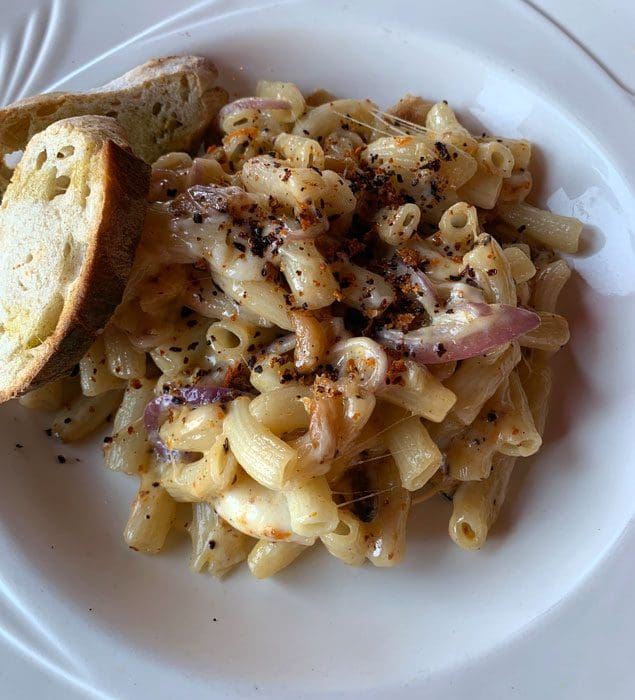 The unmistakable aroma of anise wafting toward us was reminiscent of some of the best pho we’ve had in the Duke City area. Instead of the long ramen noodles, penne pasta swam in a rich, translucent onion-enhanced broth made even more sublime by the generous presence of tender tendrils of pork. Caldo di spalla translates from Italian to pork shoulder soup. Perhaps a better translation would have been “absolutely delicious.”