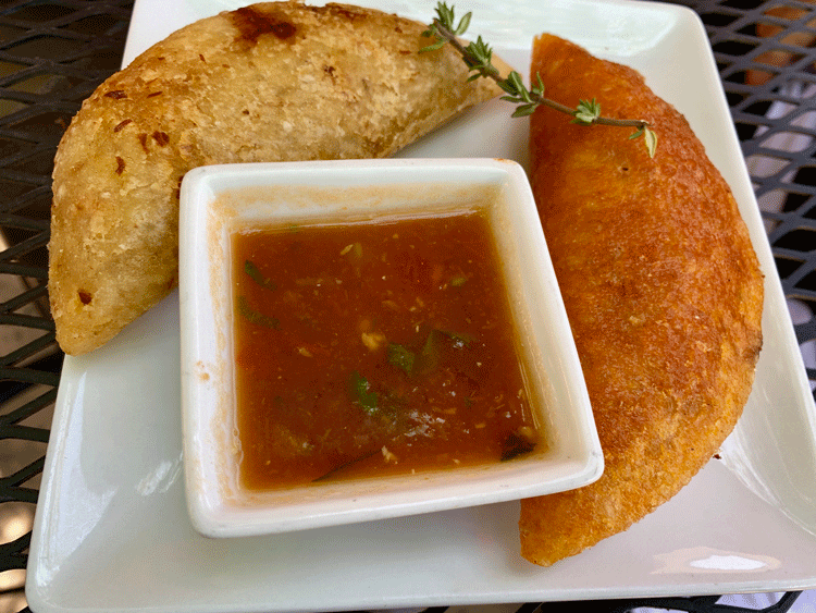 24 August 2019: When Spanish conquistadores set out to conquer the new world, it was inevitable that empanadas would go with them. Today, empanadas are standard fare in every Spanish speaking country settled by Spaniards though there are several variations. Colombia’s version, for example, is prepared with corn flour and fried, whereas empanadas in other countries are made from wheat flour and more commonly baked. The fillings of choice in Colombia are pollo (chicken) and carne (beef), both of which are available at Ajiaco along with an empanada stuffed with green chile. Ajiaco employs a bit of food coloring to differentiate its empanadas: light green for the empanada stuffed with green chile, red for empanadas stuffed with beef and a natural yellow for empanadas stuffed with chicken. They’re served hot to the touch with a salsa of medium piquancy on the side. All three are superb!