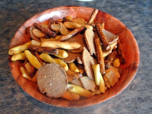 As long as there have been bars, pubs, taverns, bodegas and beer halls, there have been bar snacks, the type of which are served at the Blue Grasshopper. Salty and flavorful, these bar snacks are intended to make you want more adult beverages. A bowl of these bar snacks features pretzel sticks, hard and dry pumpernickel and rye bread pieces; and cheesy, salty and garlicky bite-sized pieces of goodness that will tide you over until your pizza is out of the oven.