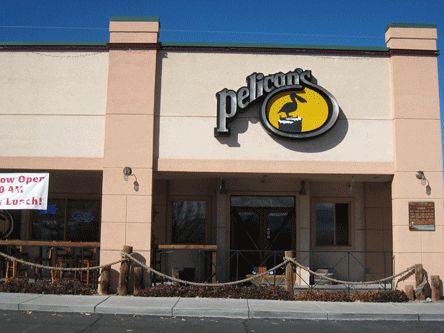 The West side Pelican’s supplanted a failing Carraba’s Italian Grill restaurant in the Cottonwood Crossings development on the northeast corner of the Coors and Seven Bar Loop intersection and thematically is more like a woody fisherman’s wharf. It is situated next door to the Outback Steakhouse, offering an excellent alternative to the popular Australian themed meatery. A small fishing boat hangs from the ceiling while bubbling aquariums teem with colorful sea life.