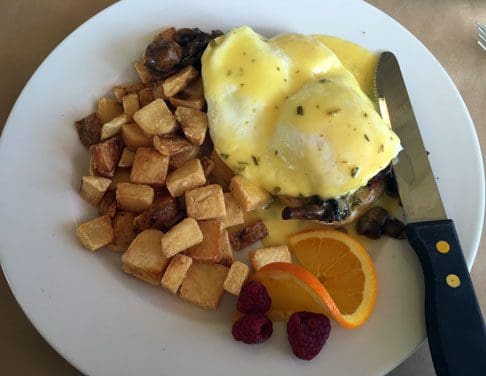1 March 2015: Stardust is believed in some cultures to have mystical and magical qualities. We wondered if those qualities extended to a breakfast sandwich named Stardust (English muffin, mushrooms, filet medallion, over easy egg, Bernaise) with a side of breakfast potatoes. It’s a very good sandwich though because of the runniness of the egg, you’ll eat it with a knife and fork and not like a sandwich. The filet medallion is especially good though somewhat on the thin side. The breakfast potatoes are little cubes of nicely fried potatoes.