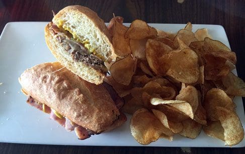 15 April 2015: Several years ago, former Albuquerque mayor Martin Chavez attempted a commercially-driven re-branding of the city. Despite his efforts, the sobriquet “The Q” didn’t exactly catch on, not that anyone would believe The Shop’s QBano is named for the mayor’s folly. Obviously, the QBano is a Cuban sandwich, one of the very best in “The Q,”…er, the Duke City. The canvas for this magnificent sandwich is a toasted bolillo roll stuffed and pressed with citrus-brined roasted local pork shoulder, sliced ham, yellow mustard, roasted garlic aioli, Gruyere cheese and housemade pickles. Just perusing the ingredients will cue you in that there are many elements which make this sandwich so special. My friend Bill raved about the garlic aioli while the pork shoulder won me over. This is a sandwich that’s more delicious than the sum of its ingredients!