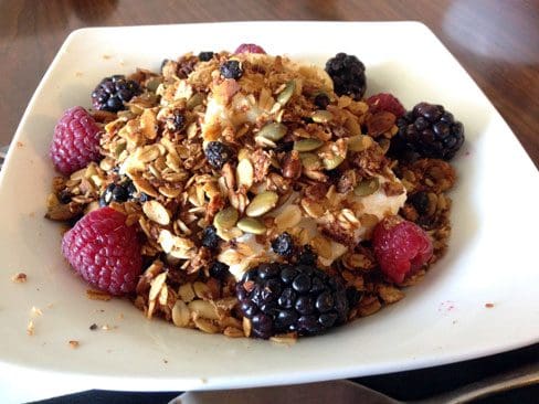 Like many of the hippies of the ’60s and ’70s, granola has become mainstream. Inventive restaurateurs have sown their wild oats with granola and have transformed what was once considered a sensible and healthy food concept into a popular and delicious dish. The Shop’s rendition ranks right up there with the Flying Star‘s magnificent “Morning Sundae” as perhaps the city’s best granola dish. This hearty housemade bowl of oats, nuts and dried fruits pairs oh so well with a tangy-sour yogurt punctuated with lemon and agave nectar and topped with fresh berries and local honey.