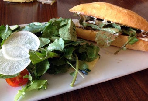 15 April 2015: In some cultures (Vietnamese, for example), sandwiches are a breakfast mainstay. For some reason, however, Americans seem to dismiss the notion of much more than eggs and ham on their breakfast sandwich (Cafe Bella being an exception). Perhaps acquiescing to American tastes, The Rush’s ubiquitously named Breakfast Sandwich does indeed include eggs and a type of ham (prosciutto) then it gets creative with tomato, arugula, and basil aioli. There isn’t enough prosciutto to suit the ham lover in most of us and veggie haters might not like the thick tomatoes or peppery arugula, but most will enjoy the sandwich in its entirety.