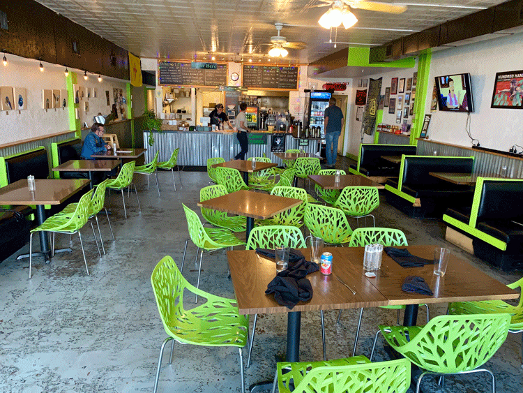 Speaking of green chile cheeseburgers, here’s an update on the Buckhorn Tavern. I stopped by last Wednesday on my way to Las Cruces and met the new owner Ernie, who was busy yanking up copper piping from the floorboards when I came upon him. He said he plans to keep everything “as is” and will hopefully open at the end of June. He said the famous Bobby Olguin is going fine and cleared the cancer hurdle and is enjoying his retirement.