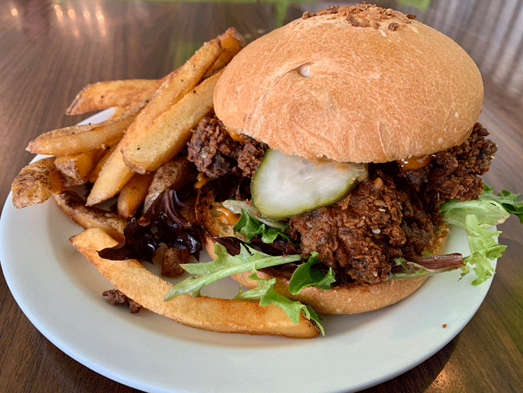 12 March 2020: Though Chef Rivera has no formal culinary education, he’s earned a doctorate in deliciousness and several bachelor’s degrees in burgers alone Just when you think you’ve had every burger combination conceivable, he comes up with another blow-you-away burger so good you wonder how you’ve lived your life without it. His latest stroke of genius is the spectacular French onion burger (two fresh burger patties with sauteed mushrooms, Gruyere, French onion, melted triple cream brie, Dijon mayo, and pickles on The Witching Flour Bakery sesame seed bun), a special-of-the-day one warm March day. As a fanatic for French onion soup, this burger answers several prayers. Every flavor, every nuance, every salty bit of deliciousness of French onion soup is magically imparted onto a burger you have to eat with a fork. The smash burger style beef patties benefit most from the slowly caramelized sweet onions and their rich, deep flavor, but the sesame seed buns is what sops up the juices oh so well. This is a ten napkin burger affair so don’t wear white when you order one.