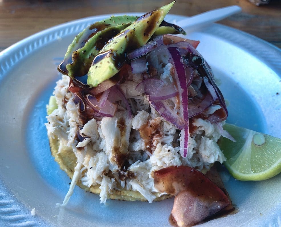 2 August 2020: The torre de mariscos is so good, it makes the crab tostada seem rather pedestrian in comparison. That shouldn’t be the case because the crab tostada is a star in its own right. Picture a crispy corn tortilla topped with a generous mound of finely shredded lump crab held loosely together with just a sheen of mayo. The crab is topped with red onion, sliced avocados and a drizzle of salsa negra. Unlike tostadas de ceviche which acquire their flavor profile from citrus juices, the sweet, delicate, delicious crab is the star of this dish.