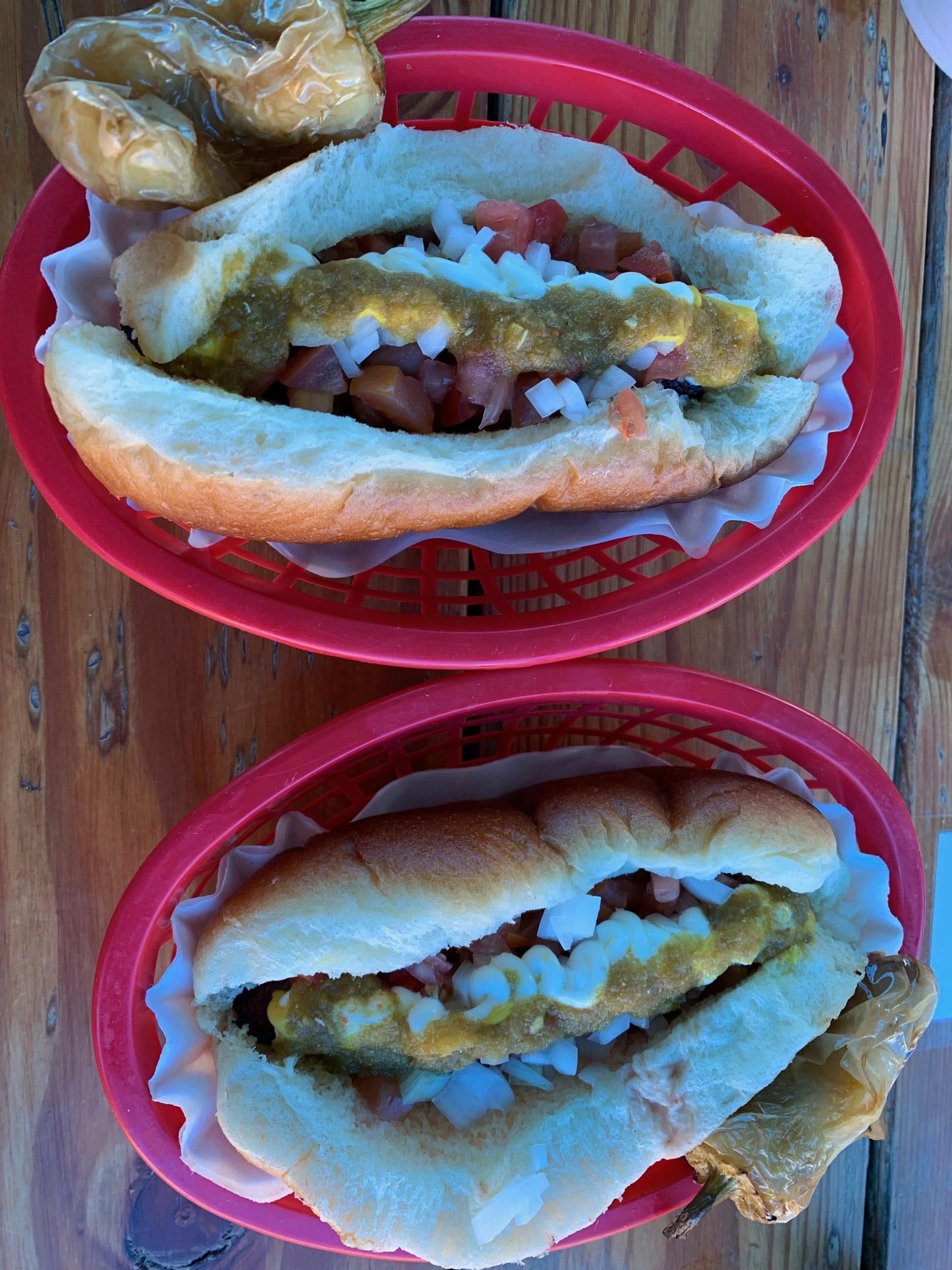 2 July 2020: Anthropologist Maribel Alvarez of the University of Arizona says the “quintessential food of Tucson” is the Sonoran hot dog. Tucson should be very proud. These hot dogs are mouth-watering–a thick, smoky dog gift-wrapped in bacon and nestled in a pillowy soft, slightly sweet bun with seemingly every condiment applied. There’s mustard, ketchup and mayo as well as a mild jalapeno sauce. This hot dog is a wonderful study in contrasts: the sweetness of the bun and the smoky savoriness of the hot dog and bacon; the heat of the hot dog and the cool of the ketchup; the piquancy of the jalapeño sauce and the creaminess of the mayo. Moreover, it’s a study in the appreciation of complex simplicity. Not everyone will love the Sonoran hot dog, but I feel validated in my high opinion of this mess in a bun because three-time James Beard award-winning chef Pati Jinich loves them as much as we do.