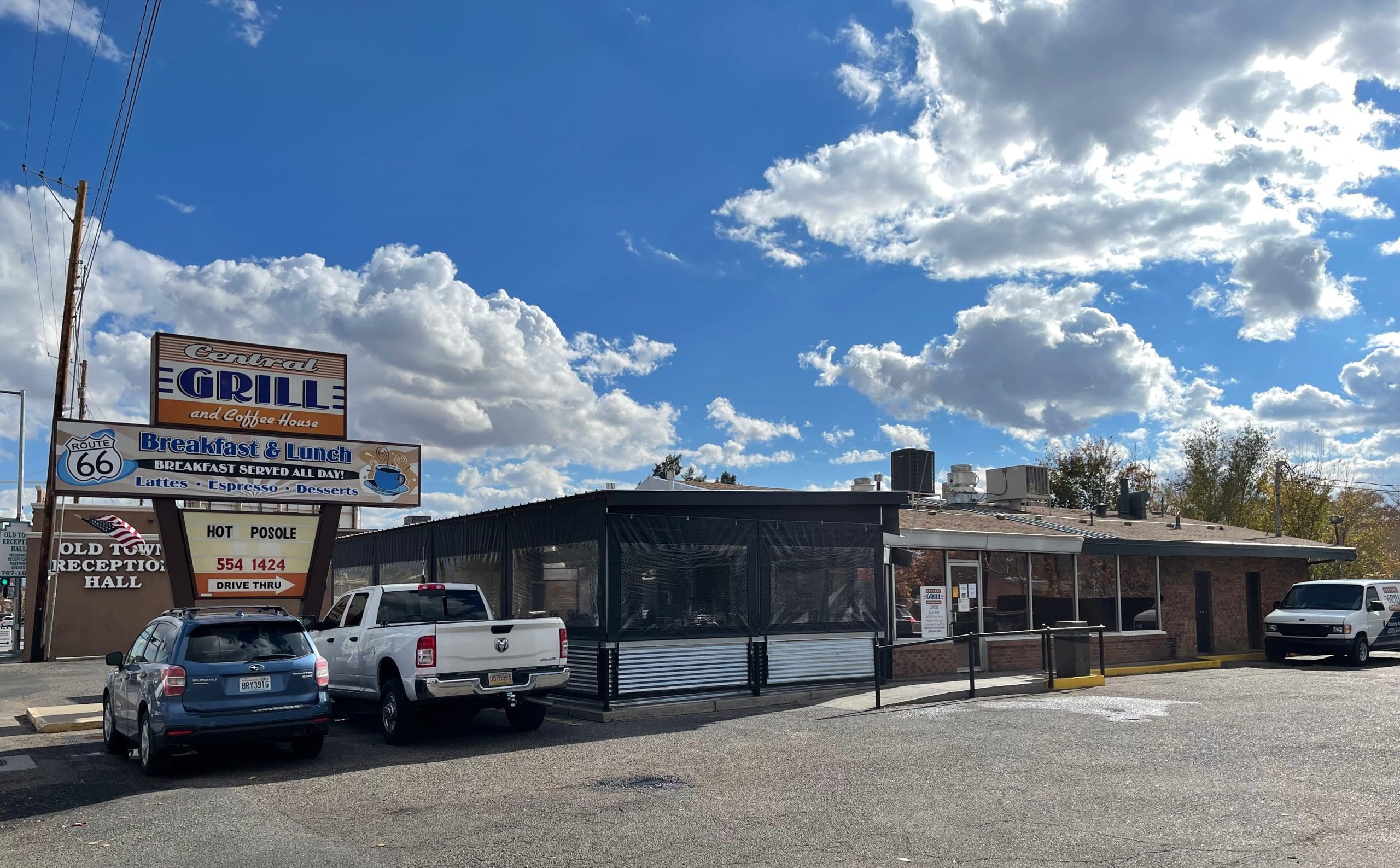 One landmark Breaking Bad enthusiasts will no longer find is Liu’s Chinese Fast Food Restaurant which made a cameo appearance during a season one episode entitled “Cancer Man.” No longer will fans be able to reenact the scene in which Christian “Combo” Ortega stood outside the restaurant to call Jesse Pinkman, Breaking Bad’s deuteragonist. It may not seem like much to the casual watcher, but to diehard devotees, it’s part of living the dream. Situated on Old Route 66 directly across the street from the Old Town Plaza parking lot, Liu’s may not have been contemporaneous with the Conquistadores, but it sure seems that way. In May, 2014, the Central Grill and Coffee House replaced Liu’s at the 60-year-old edifice, in the process transforming the nondescript building from a rather austere and uninviting premises to a bright, welcoming diner.
